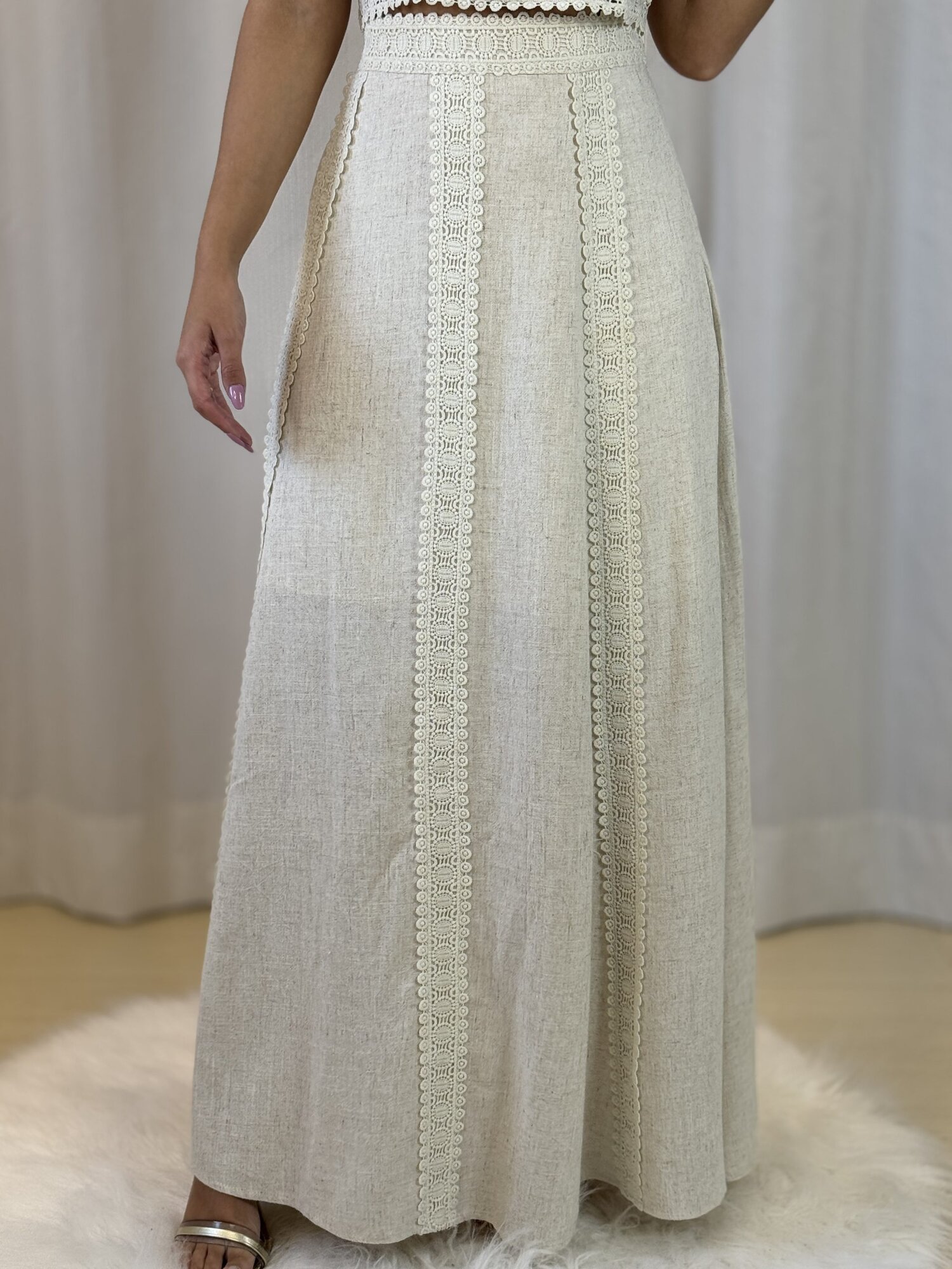 Tecido Linho com Guipir;