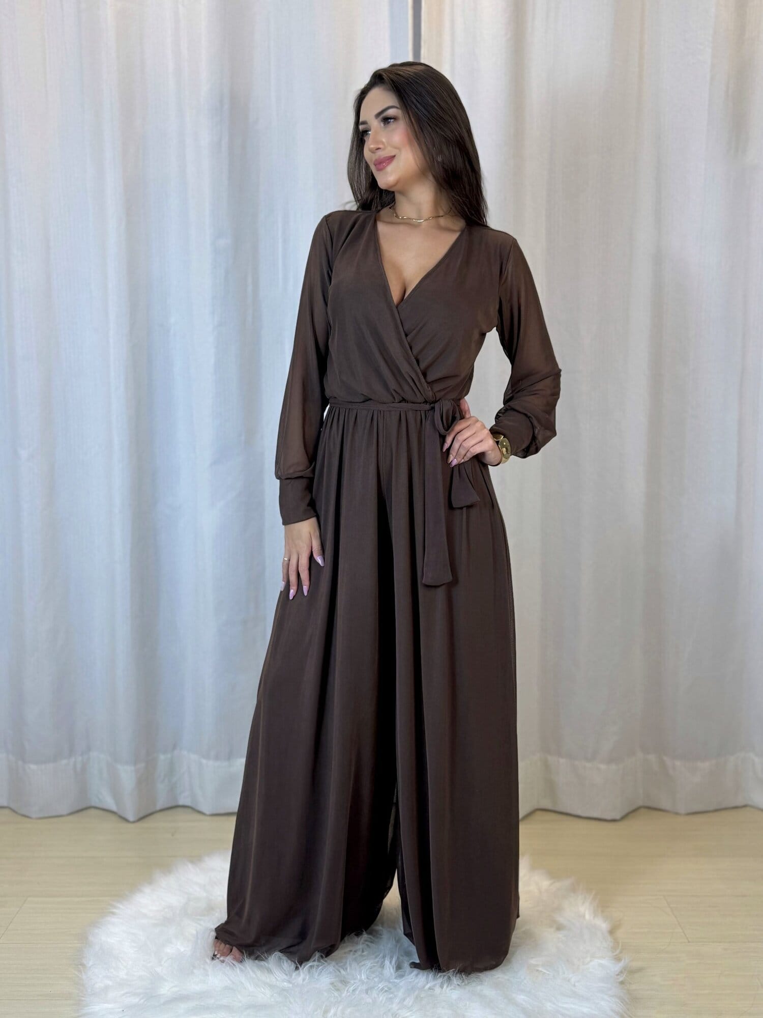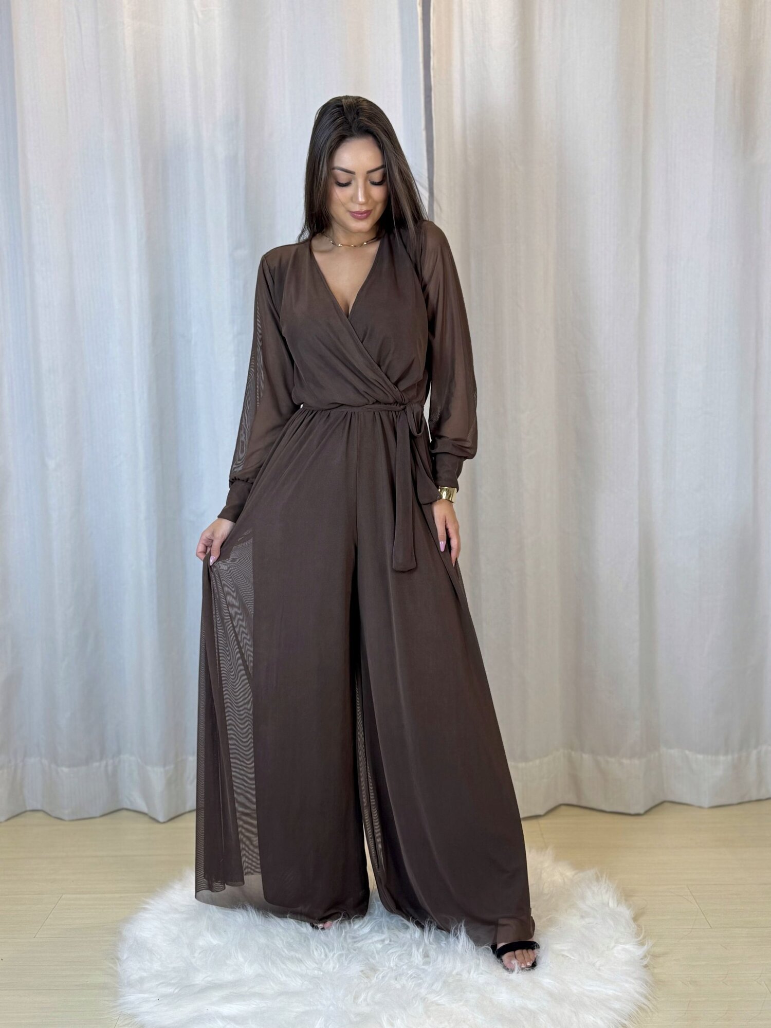Macacão Tule Luana Marrom Café