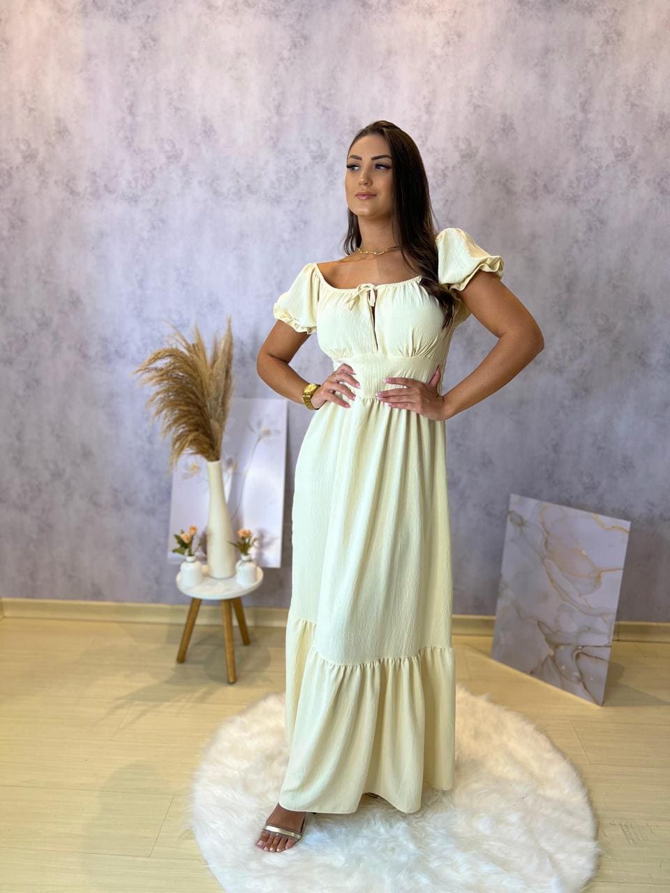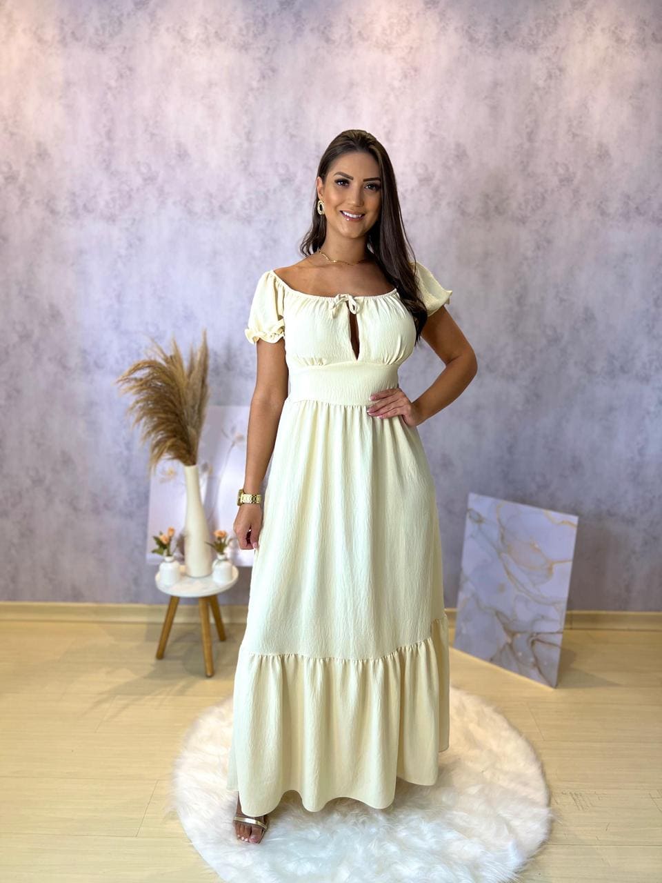 Vestido Oferta Camponesa Bege